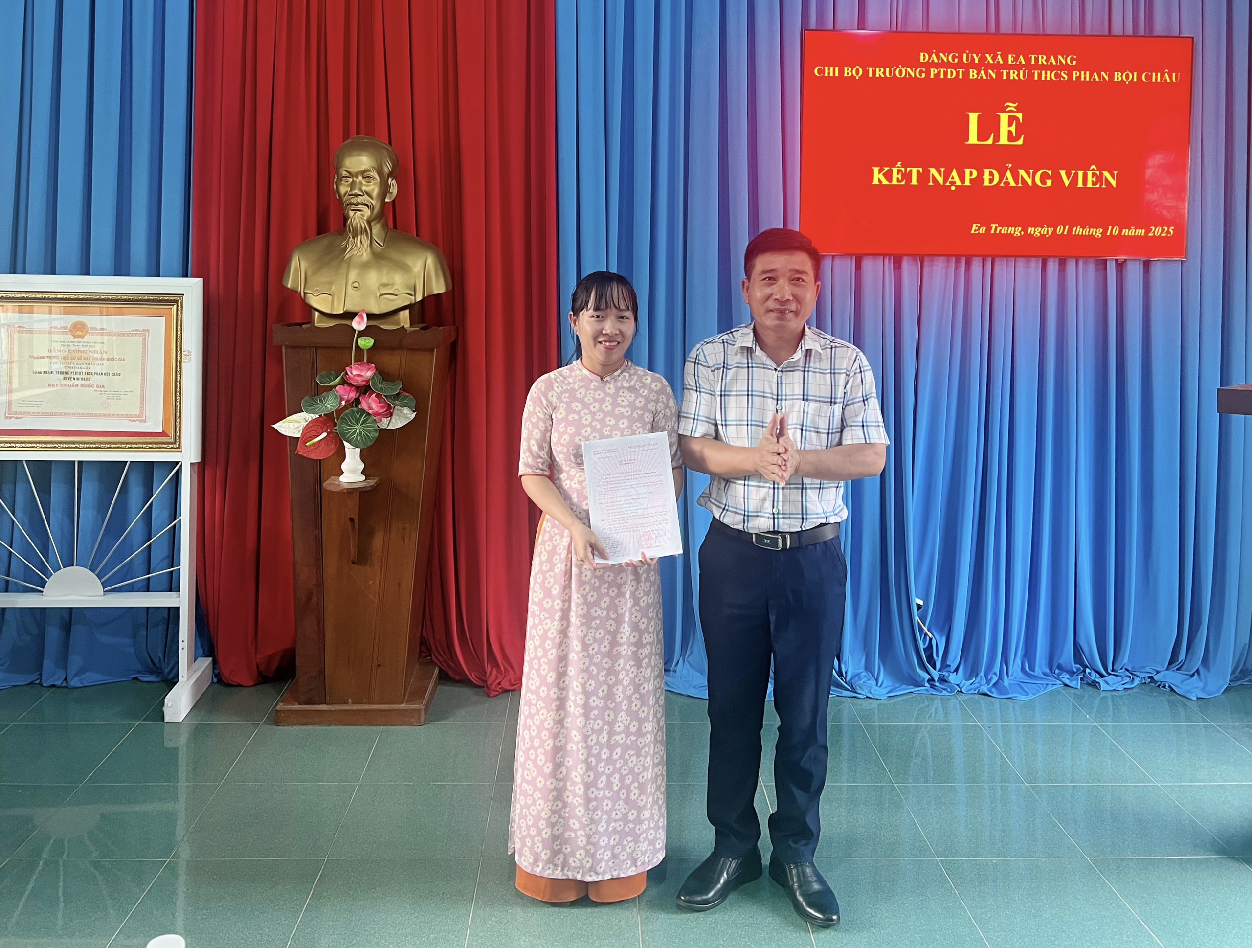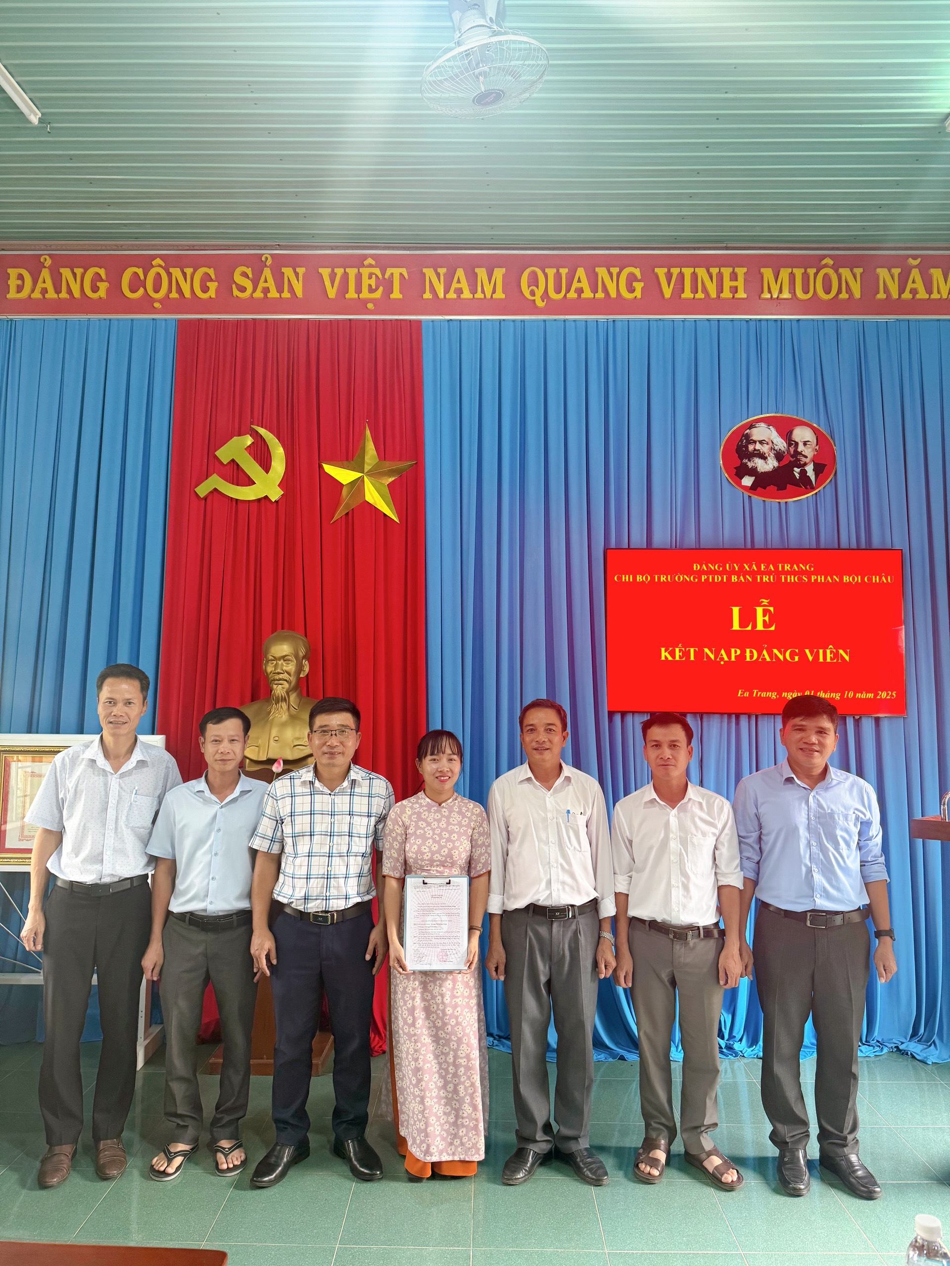 Khoảnh khắc thiêng liêng ấy không chỉ là niềm vinh dự cá nhân của đồng chí Giang, mà còn là niềm tự hào của tập thể Chi bộ Trường PTDT BT THCS Phan Bội Châu – một đơn vị luôn chú trọng công tác phát triển Đảng, bồi dưỡng những quần chúng ưu tú, góp phần xây dựng tổ chức Đảng ngày càng vững mạnh.